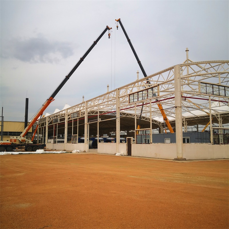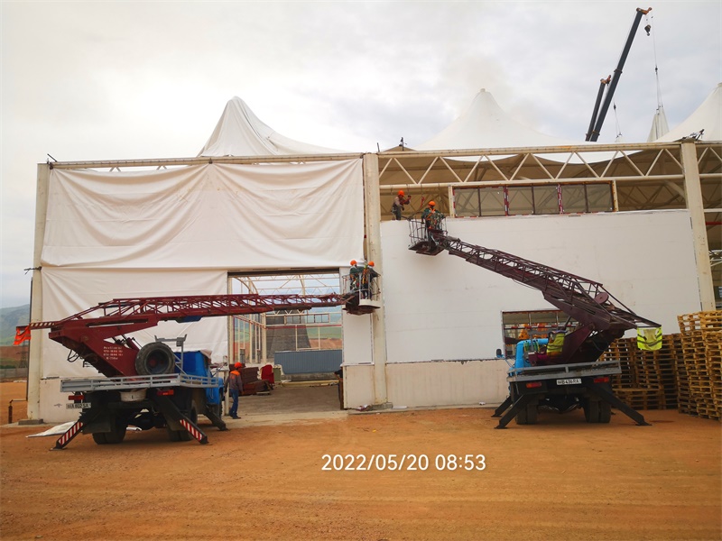外貿(mào)合作形式:本項目在烏茲別克斯坦·塔什干州·阿漢加蘭落地,在全球疫情影響下,采用了以下合作形式:我們采購鋼材、膜材及配套的相關(guān)材料,在國內(nèi)工廠加工為成品部件后打包運輸?shù)絿鈭龅兀粯I(yè)主在當(dāng)?shù)卣夜と藞F隊,我們派遣資深的鋼結(jié)構(gòu)和膜結(jié)構(gòu)技術(shù)人員到現(xiàn)場培訓(xùn)并指導(dǎo)工人施工安裝,直至項目順利完工。