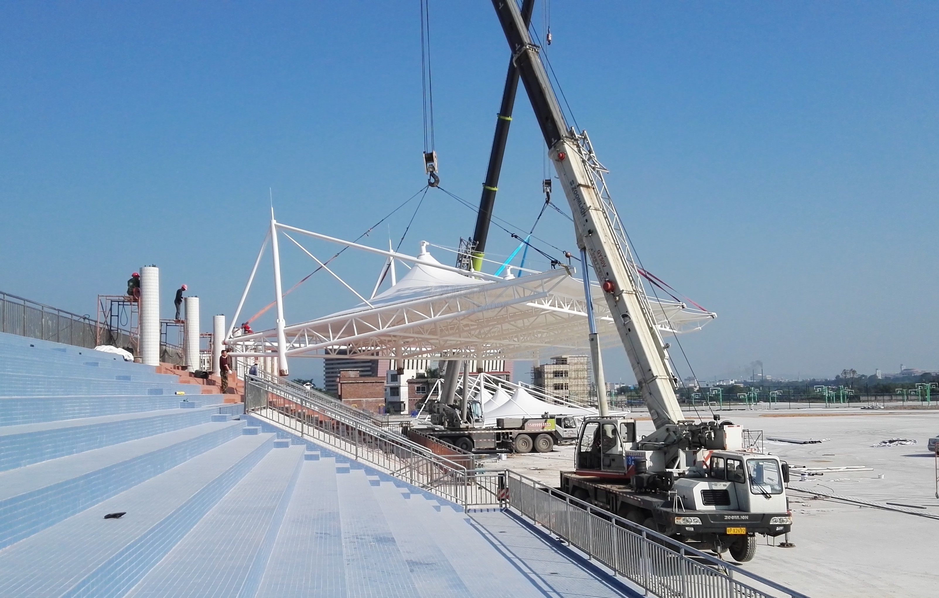 以上是對(duì)“廣州機(jī)電學(xué)校膜結(jié)構(gòu)看臺(tái)吊裝作業(yè)”介紹。在這里燁興膜結(jié)構(gòu)公司小編提醒您,如果您對(duì)學(xué)校膜結(jié)構(gòu)運(yùn)動(dòng)場(chǎng)看臺(tái)還有疑問(wèn)或者有興趣的話(huà),請(qǐng)點(diǎn)擊聯(lián)系我們網(wǎng)頁(yè)右側(cè)的在線(xiàn)客服,或致電:400-9967-995,燁興膜結(jié)構(gòu)——從心開(kāi)始為您服務(wù)的貼心小顧問(wèn)。