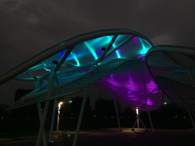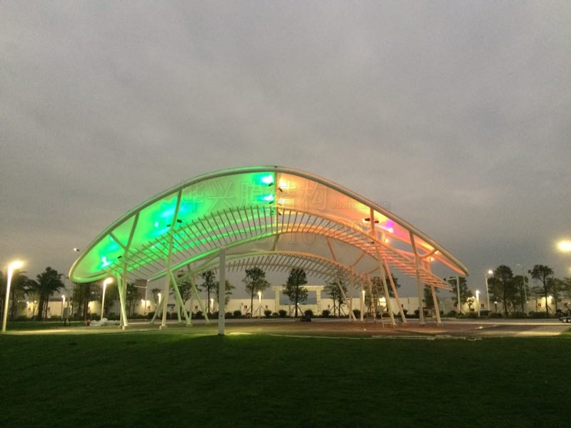 燁興提示:生活中,我們接觸最多的膜結(jié)構(gòu)建筑是公交站臺或者人行天橋那灰黑的擋雨棚,這些因?yàn)樘厥庥猛径舭宥宦傻恼九_雨亭成了人們對膜結(jié)構(gòu)的主流觀感。最近,最高人民法院再審改判聶樹斌無罪,22年后終于為其無罪正名,在此,燁興小編也想給膜結(jié)構(gòu)正一下名,用我們公司最近完成的一個作品讓大家從新認(rèn)識一下膜結(jié)構(gòu)的色彩,有興趣的就來欣賞一下我們這個膜結(jié)構(gòu)的百變風(fēng)情吧。