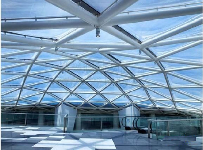 透光性能:ETFE 膜的透光率可高達95%。該材料不阻擋紫外線等光的透射,以保證建筑內(nèi)部自然光線。通過表面印刷,該材料的半透明度可進一步降低到50%;由于其極好的透光性能,特別適合建造需人工模擬自然環(huán)境的建筑如植物園以及運動場館等。