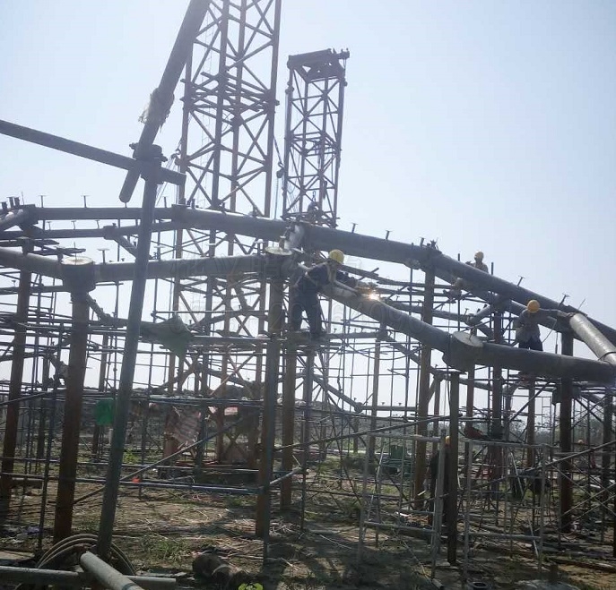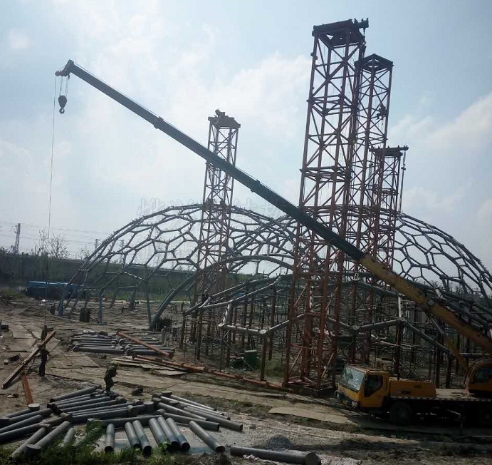 今天的工作任務(wù),主要分兩部分,主力繼續(xù)對三號球的鋼構(gòu)進(jìn)行地面拼裝,剩余一隊(duì)人員負(fù)責(zé)對二號球鋼構(gòu)的支撐架進(jìn)行拆解轉(zhuǎn)移,為三號球鋼構(gòu)吊裝做好準(zhǔn)備。連云港薔薇湖熱帶植物園一期工程三個半球形場館,目前已經(jīng)完成兩個半球的鋼構(gòu)完成拼裝,第三個已在地面完成三分之一量,即將準(zhǔn)備吊裝。