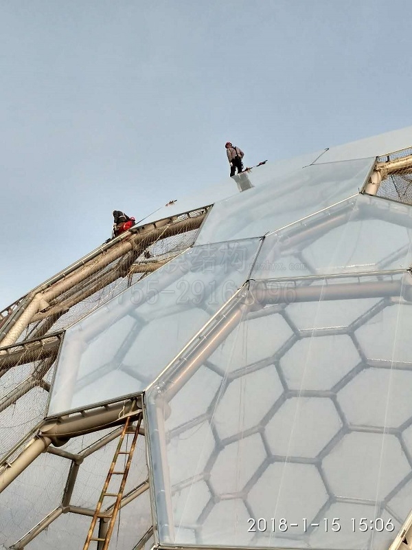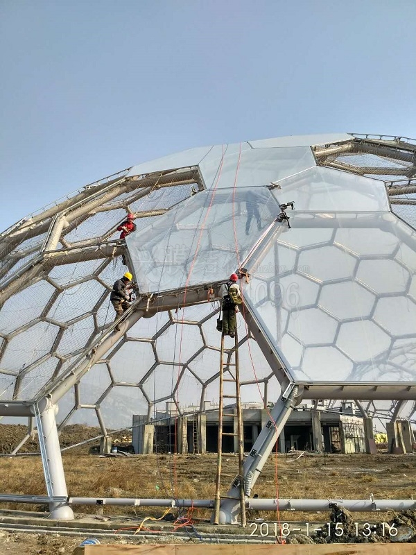 熱烈祝賀:燁興連云港薔薇湖ETFE膜結(jié)構(gòu)生態(tài)園項目開始進(jìn)入正式大規(guī)模裝膜階段!