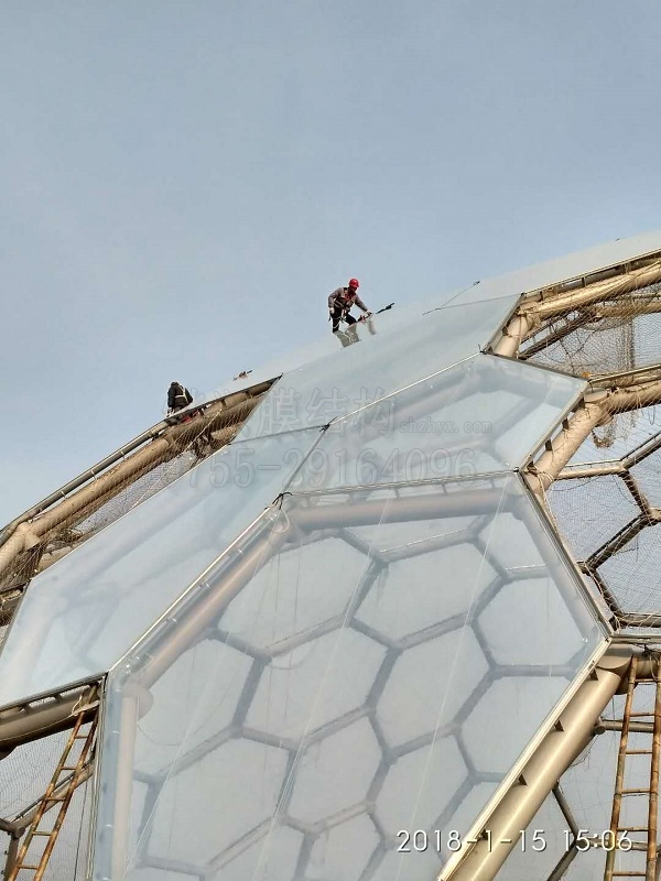 燁興連云港薔薇湖ETFE膜結(jié)構(gòu)生態(tài)園開始正式裝膜