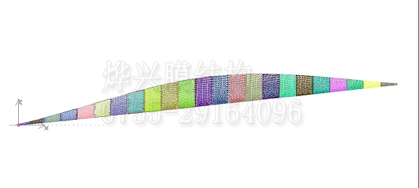 長96米,最寬處18米,單片面積1200平方米,吊裝受力不平衡將導(dǎo)致膜材變形