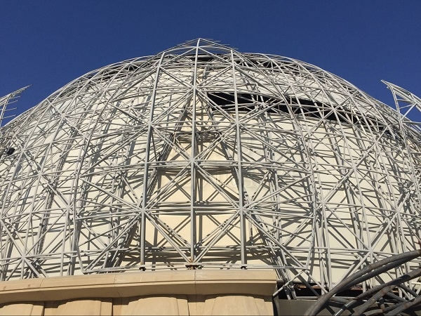 其次,拆裝笨重的支撐鋼結(jié)構(gòu)產(chǎn)生的費(fèi)用高,使得拆卸式膜結(jié)構(gòu)不經(jīng)濟(jì)。膜結(jié)構(gòu)作為一種建筑物,除了實(shí)用功能,還有很高的安全技術(shù)要求,所以一般膜結(jié)構(gòu)的鋼結(jié)構(gòu)支撐都要做得比較牢固,用鋼量是其它臨時(shí)設(shè)施遠(yuǎn)遠(yuǎn)不能相比的,所以拆裝膜結(jié)構(gòu)很多時(shí)候都要使用大型起吊設(shè)備進(jìn)行配合,既麻煩成本又高,這也是拆卸式膜結(jié)構(gòu)不流行的原因。