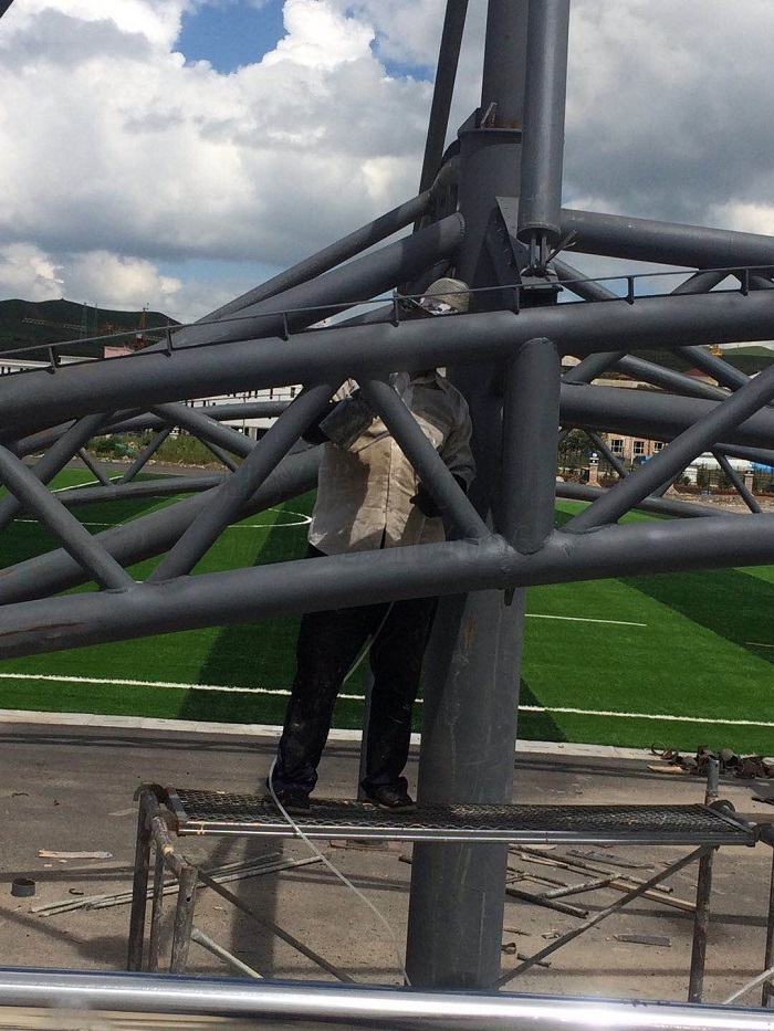 甘南項(xiàng)目地處西北,冬季降雪量較大,為了提高工程在雨雪天氣的耐候性及安全性,我們特別對(duì)工程的抗雪壓能力進(jìn)行了強(qiáng)化。從現(xiàn)場(chǎng)傳回來(lái)的圖片可以看到,鋼構(gòu)龍骨都比較粗大堅(jiān)固,防銹抗腐蝕工作也做得比較到位。