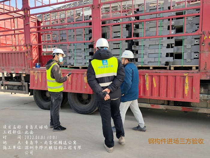 燁興公司是亞洲杯青島青春足球場(chǎng)項(xiàng)目的參建單位,負(fù)責(zé)主場(chǎng)館ETFE膜結(jié)構(gòu)部分的深化設(shè)計(jì)及施工安裝。根據(jù)派駐現(xiàn)場(chǎng)的項(xiàng)目經(jīng)理反饋,近期我們的膜單元樣品已經(jīng)驗(yàn)收通過(guò),目前正在進(jìn)行二次鋼構(gòu)部件的加工安裝,鋁型材支架及ETFE膜原材料也備好在工廠,隨時(shí)準(zhǔn)備加工出貨,春節(jié)年后工程將迎來(lái)快速施工周期。
