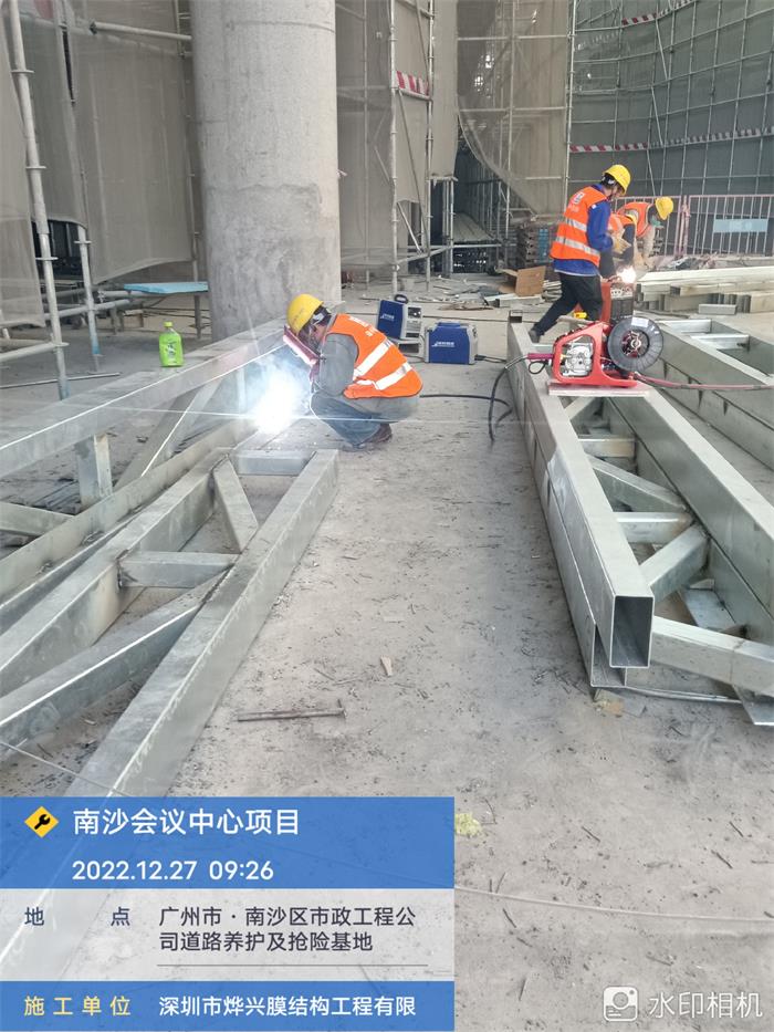 燁興作為此項(xiàng)目膜結(jié)構(gòu)專(zhuān)業(yè)承包商,負(fù)責(zé)國(guó)際會(huì)議中心PTFE膜結(jié)構(gòu)部分的深化設(shè)計(jì)及施工安裝。如今燁興團(tuán)隊(duì)已經(jīng)進(jìn)場(chǎng)施工,現(xiàn)場(chǎng)正有條不紊地進(jìn)行膜結(jié)構(gòu)安裝先期準(zhǔn)備工作。
